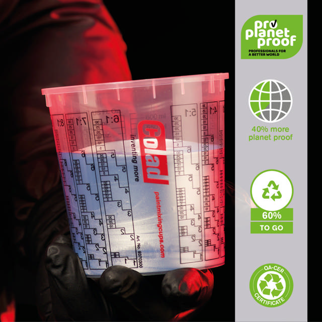 Turbomix™ Paintsaver™ está compuesto al 75 % por diversas materias primas de plástico reciclado tras su consumo (PCR).