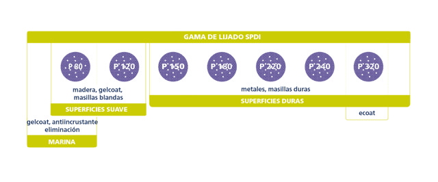 → Granos de P80 a P320 para el lijado de metales, e-coat y masilla