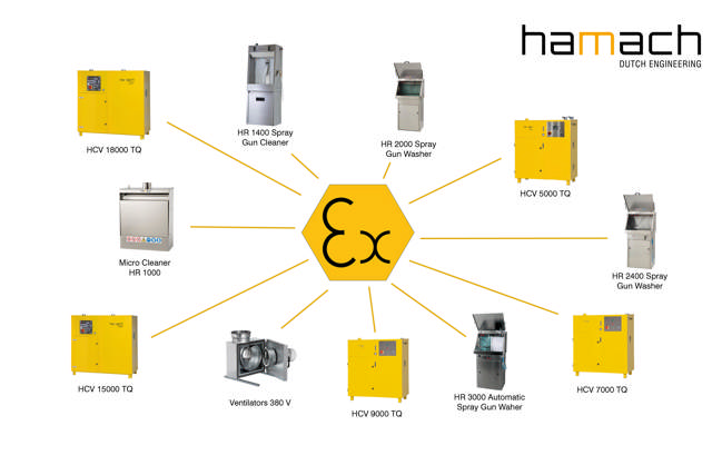 La plupart de nos produits Hamach sont disponibles en versions ATEX selon la directive 2014/34/UE. Cela signifie qu’ils sont adaptés à une utilisation dans les atmosphères explosibles comme les cabines d’application et les laboratoires. La directive définit les exigences de santé et de sécurité principales et donc vous garantit un environnement sûr et sain pour tirer le meilleur parti de votre expertise. Les autres produits Hamach avec une directive ATEX sont :